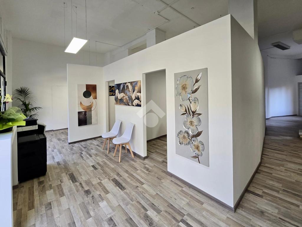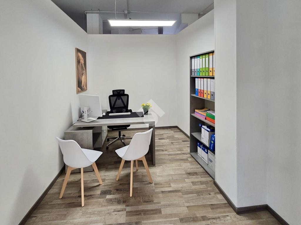 L'immobile si presenta in buono stato e si compone di ingresso vetrinato su ampio e luminoso locale open space, ulteriore locale sito al piano rialzato e servizio con antibagno.