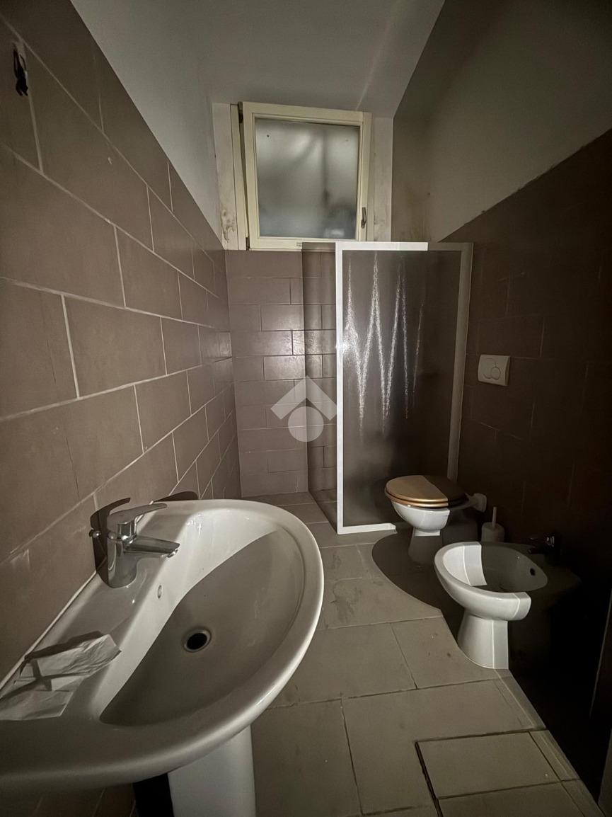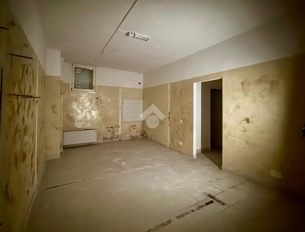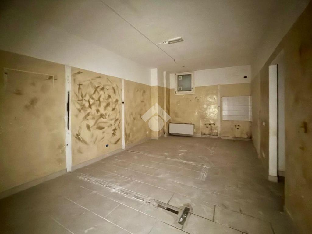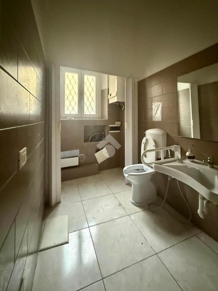 L'immobile si apre con un ingresso che conduce a un ampio open space, ideale per accogliere clienti e visitatori. Il piano terra è completato da un servizio finestrato a norma per disabili, garantendo accessibilità e comfort. Una scala interna collega il piano terra a due locali di diversa metratura situati al piano interrato, offrendo ulteriore spazio per esposizione o magazzino, oltre ad un secondo bagno finestrato su bocca di lupo.