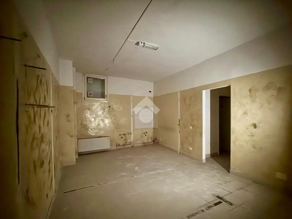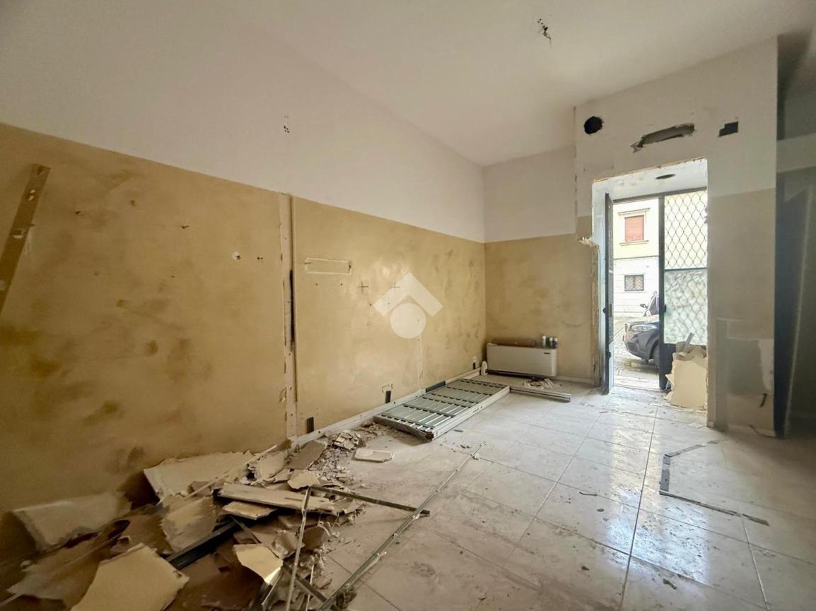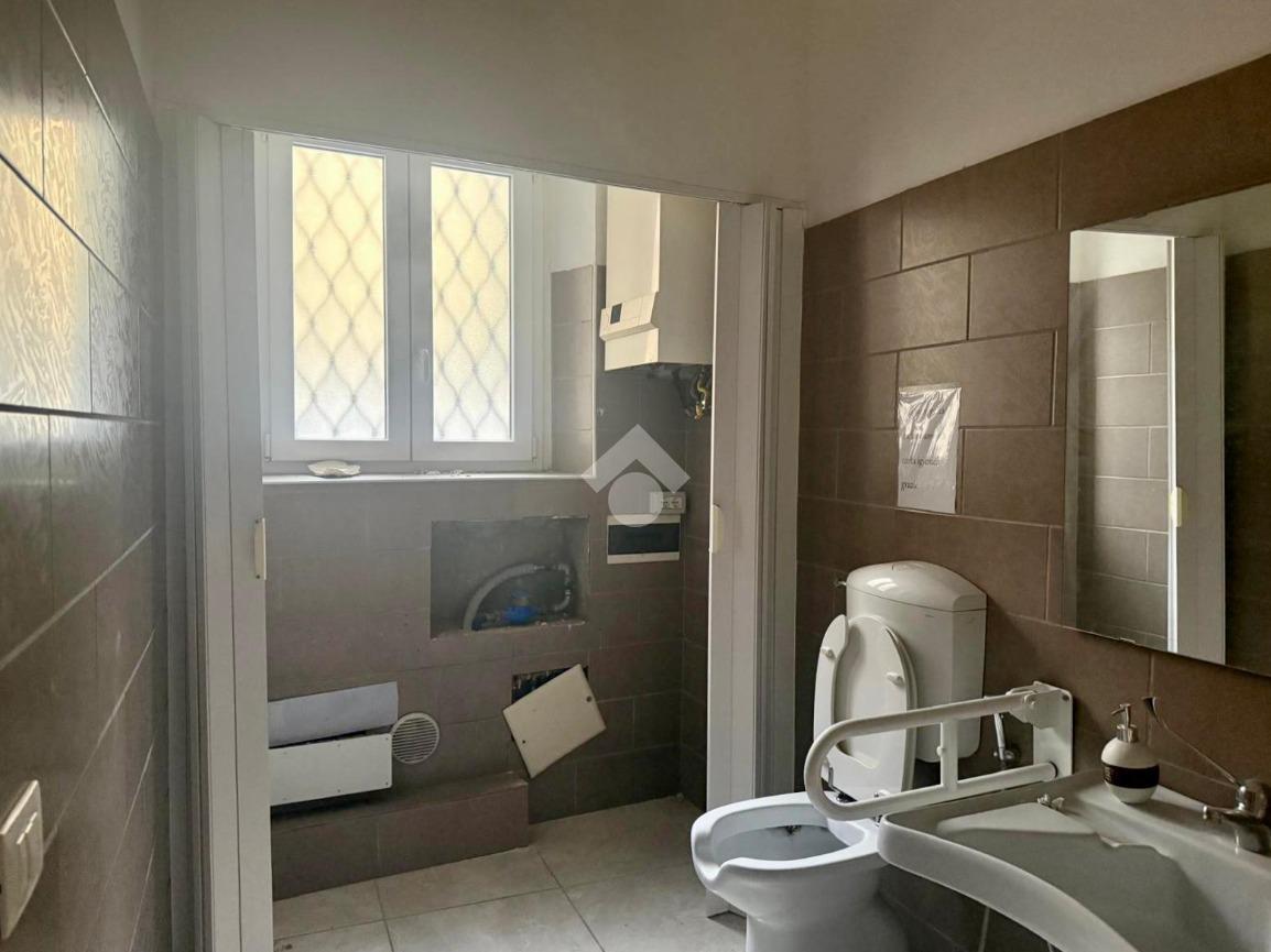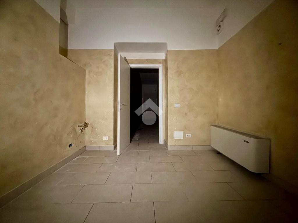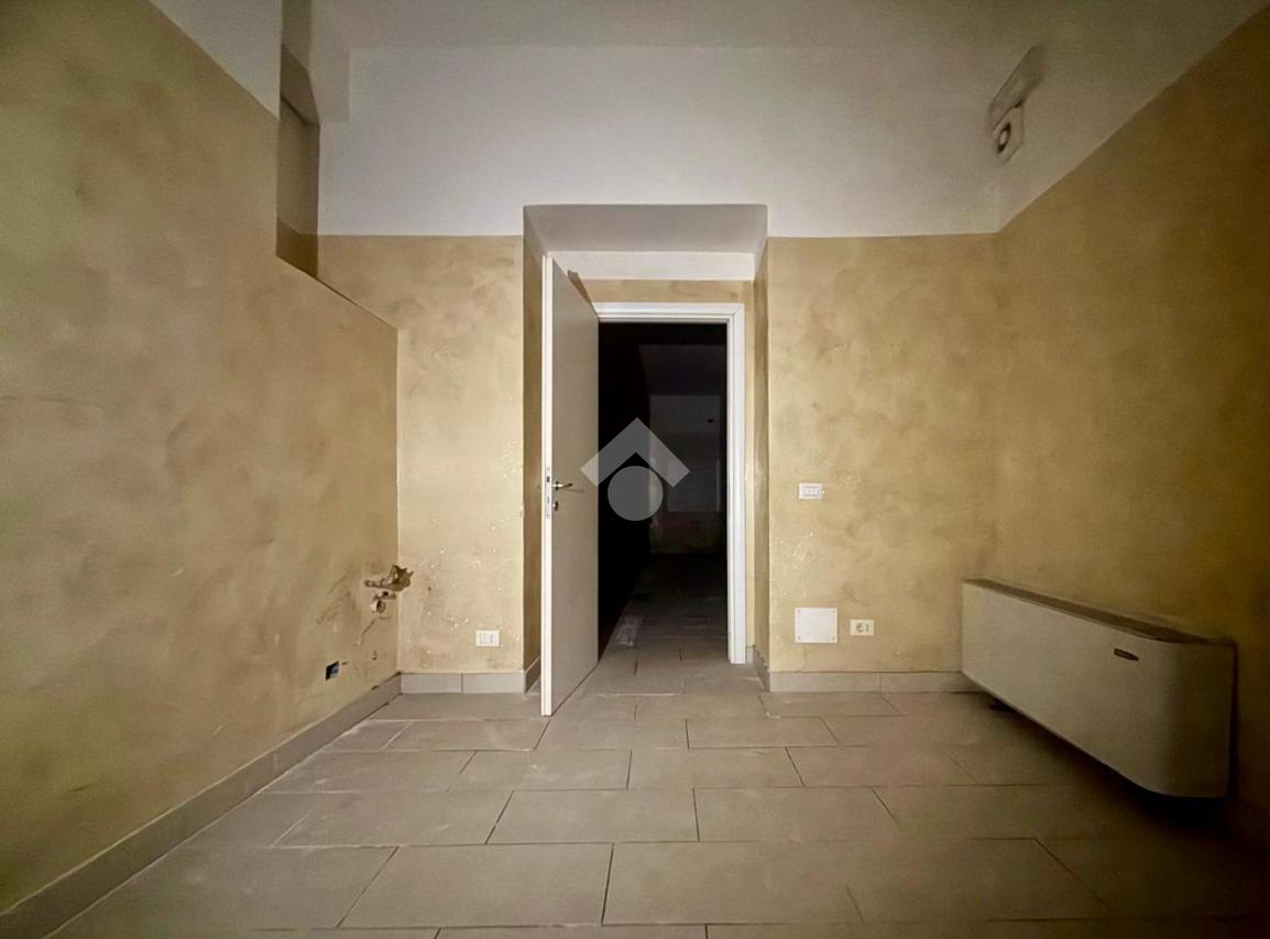 L'immobile si apre con un ingresso che conduce a un ampio open space, ideale per accogliere clienti e visitatori. Il piano terra è completato da un servizio finestrato a norma per disabili, garantendo accessibilità e comfort. Una scala interna collega il piano terra a due locali di diversa metratura situati al piano interrato, offrendo ulteriore spazio per esposizione o magazzino, oltre ad un secondo bagno finestrato su bocca di lupo.